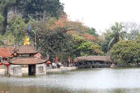 Bao quát chùa là không gian thoáng đãng với hồ nước trong xanh có hoa khoe sắc, có thủy đình là nơi múa rối nước và hai chiếc cầu nhỏ là “Nhất tiên kiều” trông vào đền Tam phủ, còn “Nguyệt tiên kiều” nối với đường lên núi.