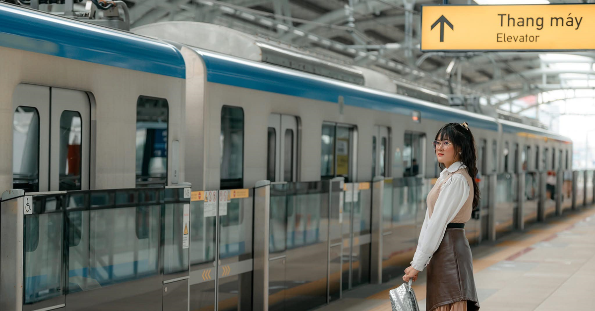 Trên các nền tảng mạng xã hội, giới trẻ đang cùng chia sẻ hình ảnh áo dài với sân ga như trào lưu mới dịp Tết Ất Tỵ 2025. (Ảnh: Tàu Metro Saigon)