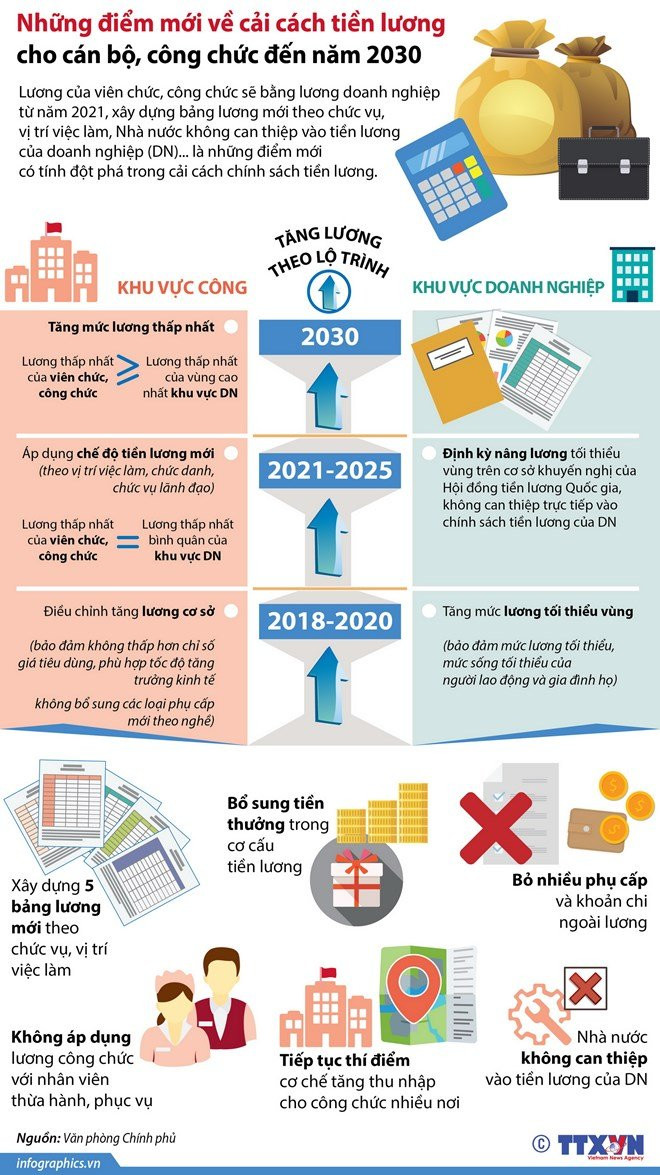Lương của viên chức, công chức sẽ bằng lương doanh nghiệp từ năm 2021, xây dựng bảng lương mới theo chức vụ, vị trí việc làm, Nhà nước không can thiệp vào tiền lương của doanh nghiệp.