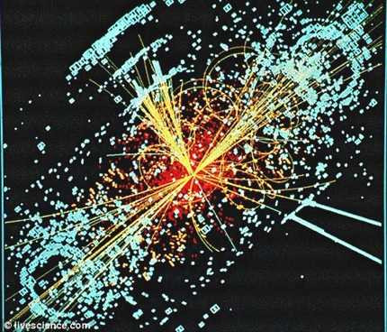 | Mô hình miêu tả hạt Higgs sau khi vỡ ra từ các va chạm của proton ở tốc độ cao trong Máy gia tốc hạt lớn. |