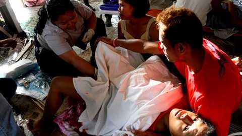 Chị Emily Sagalis đã rơi nước mắt vì hạnh phúc khi sinh hạ một bé gái ngay trong đống đổ nát ở sân bay thành phố Tacloban, khu vực bị siêu bão Hải Yến tàn phá nặng nề nhất tại Philippines ngày 11/11.