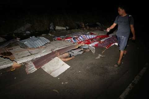 | Xác chết được đậy tôn chờ khiêng đi ở thành phố Tacloban |