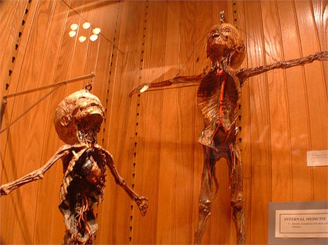 Vào bên trong bảo tàng, chúng ta sẽ nhìn thấy những hộp sọ, cấu trúc cắt dọc của khuôn mặt hay các cơ quan cơ thể bị đột biến của con người.