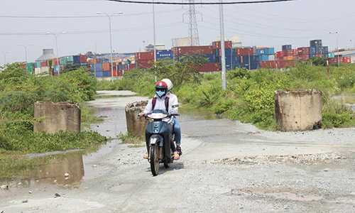 Con đường vào KĐT Bắc Rạch Chiếc (phường Phước Long A, quận 9, TP.HCM), do Công ty cổ phần Địa ốc 10 (RES10) làm chủ đầu tư, bị bịt bởi chân cầu Rạch Chiếc và bãi container. Mặt đường bị cày nát và loang lổ những vũng nước kéo dài.