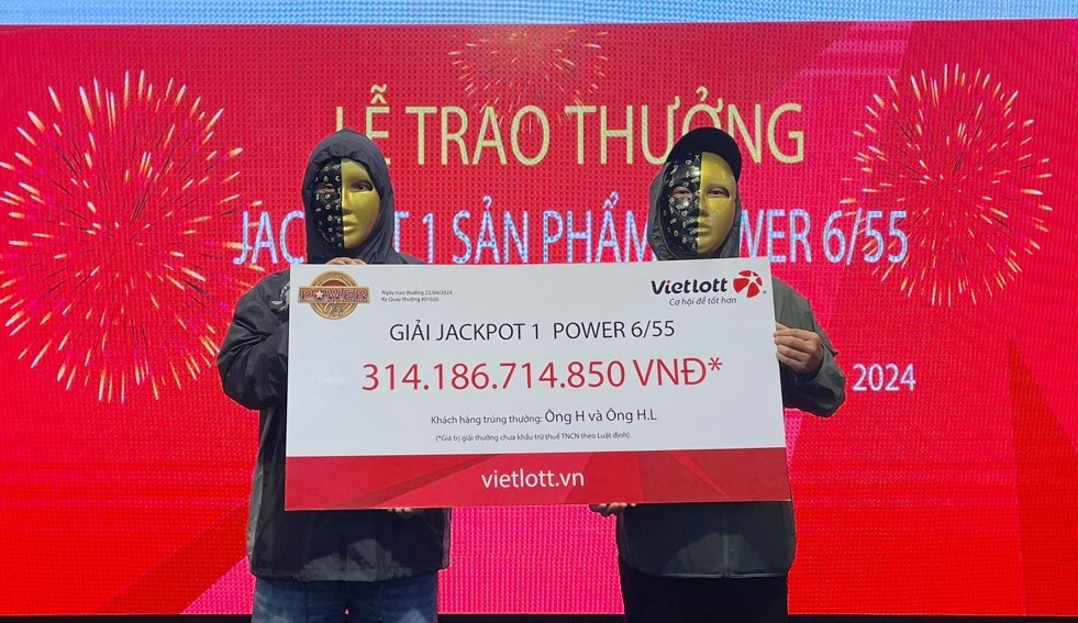 Vào tháng 4/2024, Vietlott đã trao giải độc đắc trị giá hơn 314 tỷ đồng cho hai vị khách may mắn ở TP.HCM là ông H. và ông H.L. Đây cũng là giải thưởng khủng nhất của ngành vé số tính đến thời điểm đó.