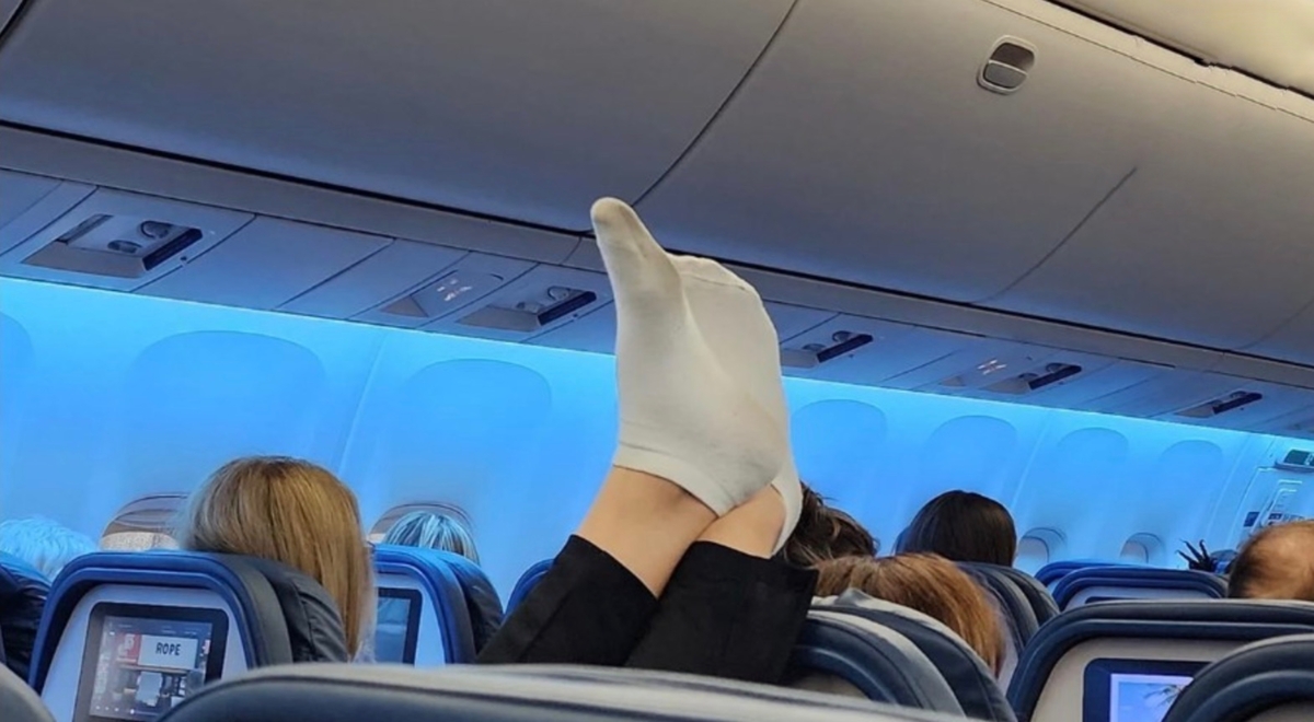 Một trong các thói xấu thường xuyên xuất hiện trên các chuyến bay phải kể tới việc hành khách đi chân trần. Đó là quyền cá nhân của mỗi người nên không tiếp viên nào lên tiếng. Tuy nhiên, không ít hành khách tháo giày, để lộ ra đôi tất bẩn bốc mùi, ảnh hưởng tới không khí chung. Số khác lại gác chân lên tường, cửa sổ máy bay…
