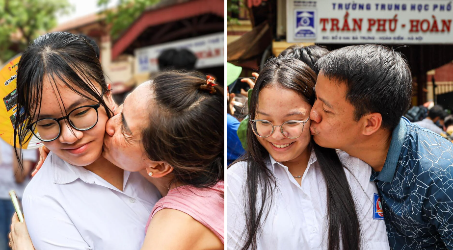 Phụ huynh gửi đến các sĩ tử những cái ôm ấp áp, nụ hôn tràn đầy yêu thương.