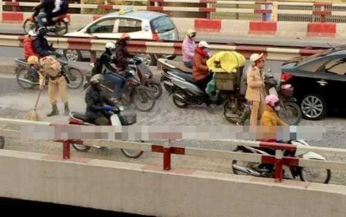 Thượng úy Lê Văn Tiến, Đội phó Đội CSGT số 4 (Công an Hà Nội) cho biết, ngay khi biết tin mặt cầu xuất hiện nhiều đá sỏi, anh đã cùng thiếu tá Nguyễn Đức Huấn, thiếu úy Lê Văn Tuấn, thượng sỹ Vũ Xuân Khánh tới quét dọn.
