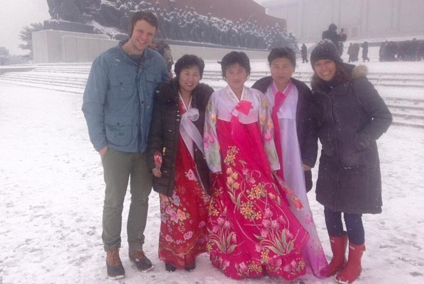 Warmbier vui đùa cùng bạn bè trong chuyến du lịch 4 ngày 3 đêm tới Triều Tiên.