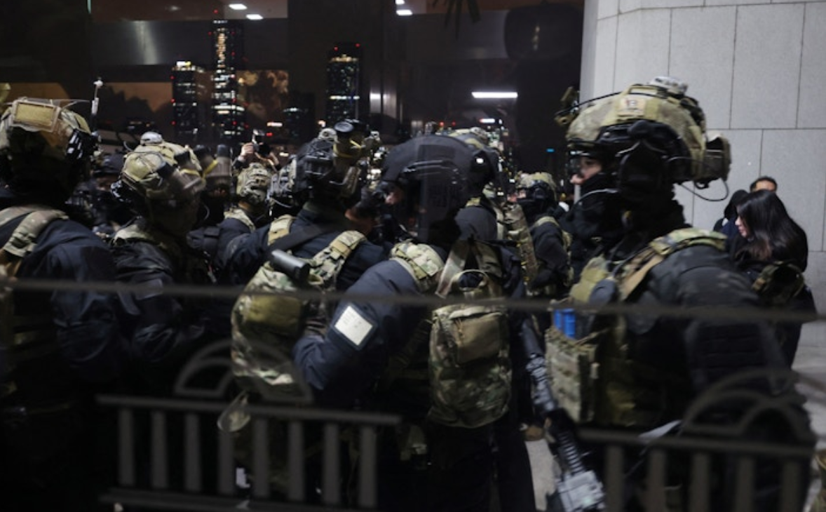 Trong khi đó, lực lượng thiết quân luật của quân đội Hàn Quốc đã vào bên trong tòa nhà quốc hội và có xô xát với các trợ lý, nhân viên tòa nhà quốc hội Hàn Quốc. Theo sắc lệnh thiết quân luật, các hoạt động chính trị bị cấm.