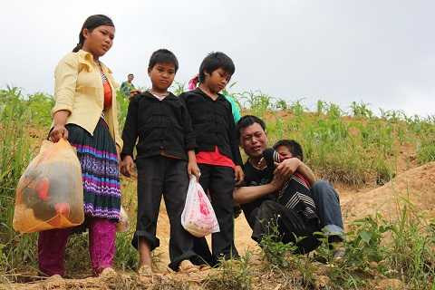 | Trong bữa ăn do UBND xã Khâu Vai chiêu đãi, họ chỉ ôm nhau khóc, không ai cầm được bát cơm |