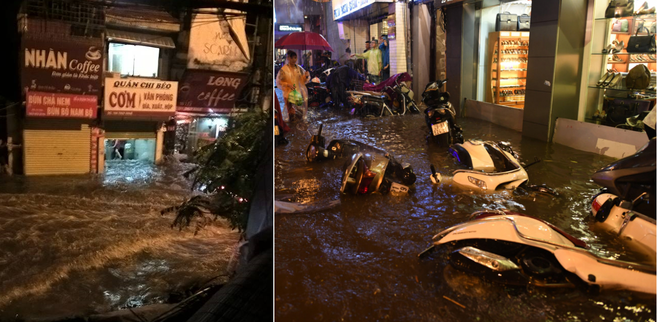 Video: Hà Nội phố biến thành sông, xe cộ chết máy hàng loạt sau mưa lớn (Nguồn: Zing)