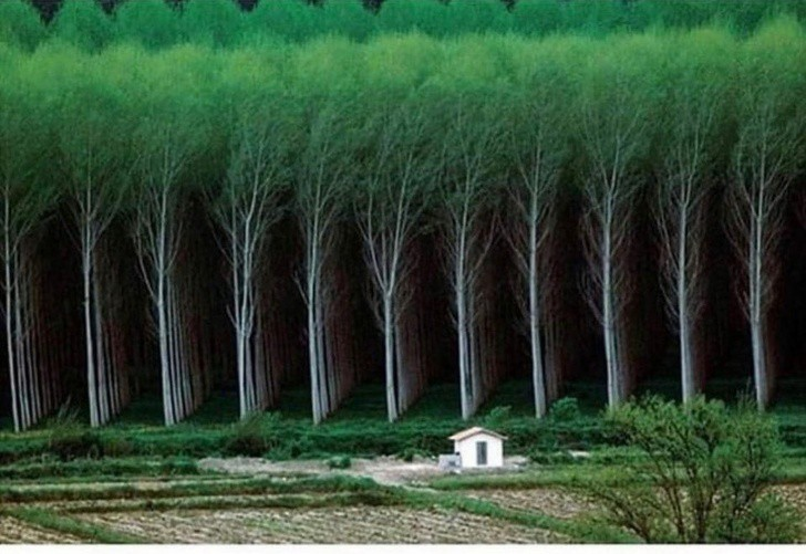 Cảnh quan được chia thành 3 phần bởi hàng rào.