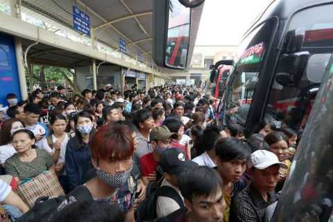 Các bến xe quá tải, người dân chén lấn để bắt xe về quê. Ảnh: Vnexpress