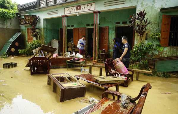 Hàng trăm hộ dân bị nước lũ tràn vào nhà. Ảnh: Báo Lào Cai