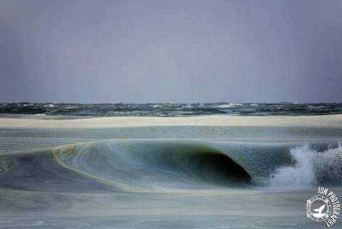 Vận động viên lướt sóng Jonathan Nimeforth đã chụp được những hình ảnh sóng biển bị đóng băng. Các con sóng nằm cách bờ khoảng 30m, vẫn còn nguyên hình dáng cuộn giữa các nếp sóng đột ngột bị đóng băng.