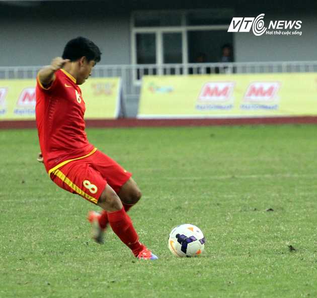 | Vũ Minh Tuấn thực hiện đá phạt |