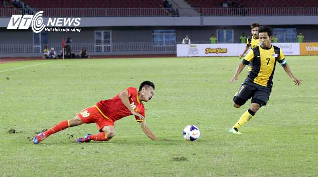 | Văn Quyết sau cú dứt điểm dội xà ngang U23 Malaysia |