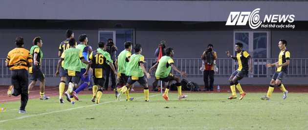 | Niềm vui của U23 Malaysia khi mở tỷ số |