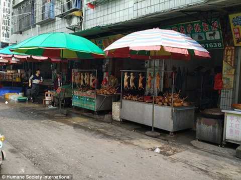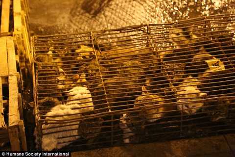 | Theo thông tin đăng trên Daily Mail, chợ thịt chó ở Ngọc Lâm, giết khoảng 300 con chó và mèo làm thịt mỗi ngày, trong đó có nhiều con vật là vật nuôi bị đánh cắp. |