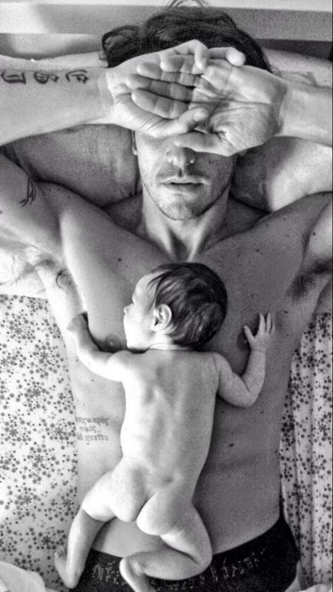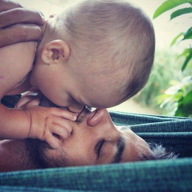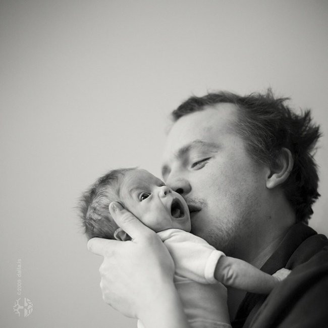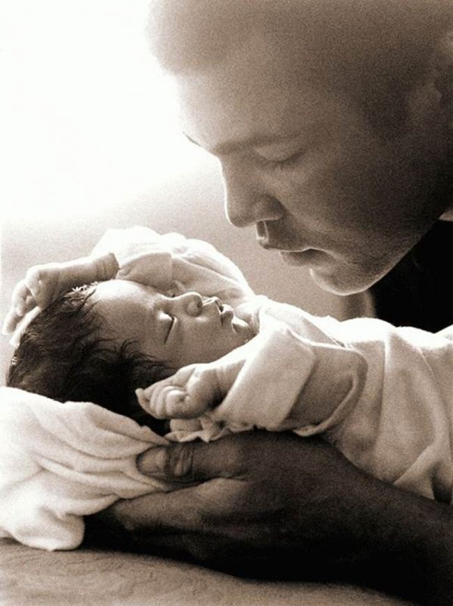 Ngắm nhìn con khi con bé bỏng nằm trong vòng tay cha