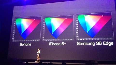 | Tam giác màu màn hình thể hiện độ trung thực màu của màn hình. Bphone nhỉnh hơn iphone 6 plus và đại diện BKAV cho hay, độ trung thực về màu màn hình của Bphone thuộc top đầu thế giới. Bphoen cũng có tính năng nghe nhạc chuyên dụng. |