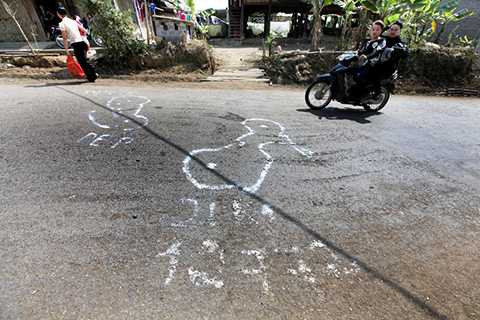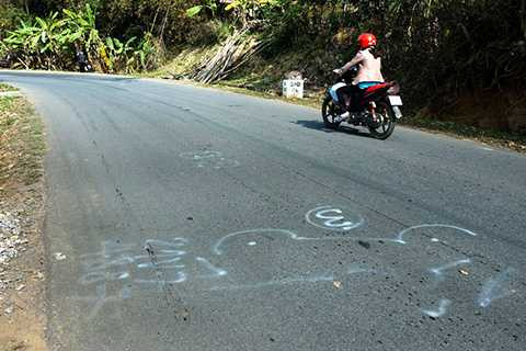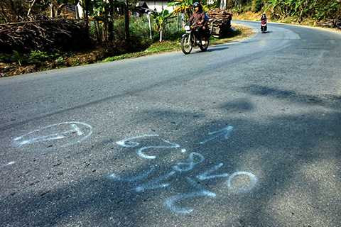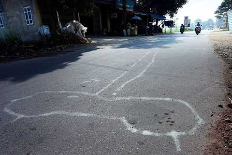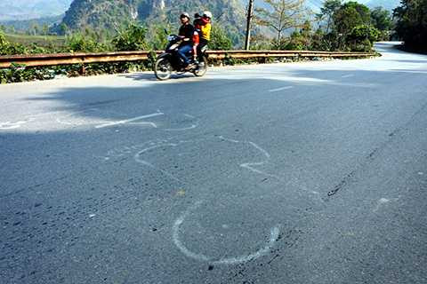 | Hình vẽ đánh dấu một vụ tai nạn giao thông trong dịp tết Ất Mùi trên con đường nối thị xã Nghĩa Lộ với huyện Trạm Tấu đoạn qua xã Hạnh Sơn (Văn Chấn). |