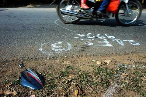 Sau mỗi vụ tại nạn, CSGT thường đánh dấu vị trí nạn nhân, phương tiện... bằng các hình vẽ nghiệp vụ trên mặt đường để phục vụ điều tra. Trong dịp nghỉ Tết vừa qua, những hình vẽ này bỗng tăng đột biến.