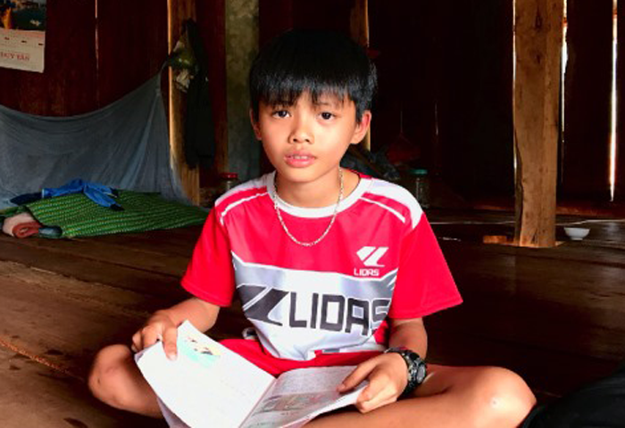 Nhìn về góc nhà nơi cất mấy cuốn sách, Lộc tự hào lắm. “Đó là sách của thầy cô trong trường đi vận động sách cũ cho tụi em đó. Có cuốn em chưa học tới nhưng cuối tuần về nhà em lại mang ra xem vì em rất thích đọc sách. Sau này học xong rồi, em lại đem cho mấy em nhỏ trong làng để các em cũng được đọc sách như em”, Lộc nói.