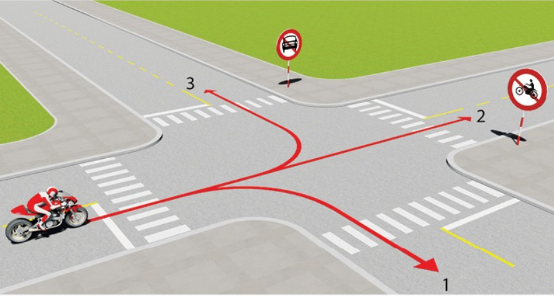 Theo hướng mũi tên, mô tô được đi những hướng nào?