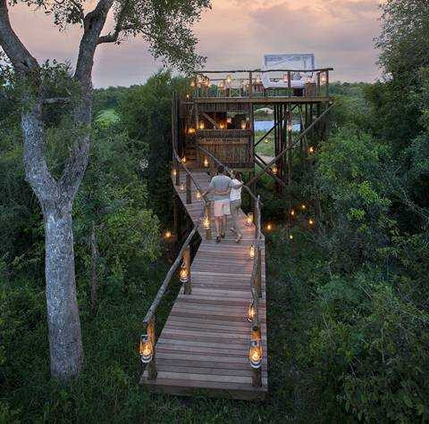 Bạn sẽ được trải nghiệm cảm giác hòa vào thiên nhiên khi sống ở đây, được ngắm voi, những con báo ở khu bảo tồn thiên nhiên Kruger gần đó. Phòng ở như nhà trên cây với chiếc giường nhỏ, bàn ăn, sàn bằng gỗ và con đường dẫn lên rất giản dị.