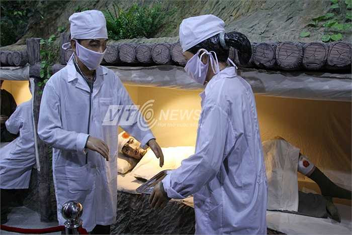 Mô hình bồ đội ta đẩy bánh rơm chống đạn để che cho việc đào hào.