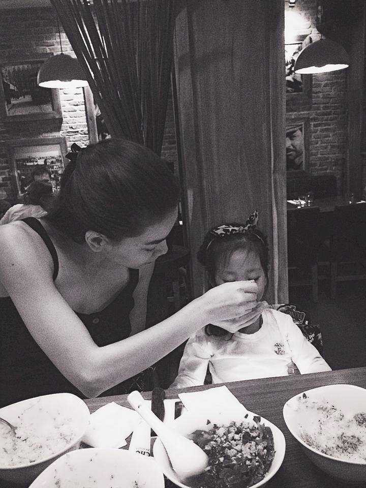 Hà Hồ khéo léo chăm sóc con của cô bạn thân.