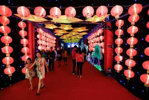 Con đường đèn lồng khổng lồ, nơi những nhân vật cổ tích được tái hiện một cách sinh động thu hút sự quan tâm của nhiều cư dân.