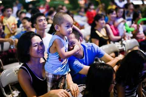 Sau một buổi chiều trải nghiệm và vui chơi trong một không gian lễ hội sôi động, chương trình biểu diễn nghệ thuật vui vẻ vào buổi tối đã kéo các gia đình xích lại gần nhau hơn. Cư dân Vinhomes Riverside cùng chăm chú theo dõi các tiết mục múa, hát xung quanh câu chuyện về sự tích đêm rằm.