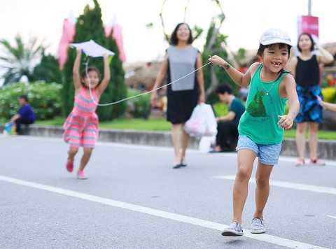 Trò chơi thả diều thu hút nhiều em nhỏ. Cánh diều tuổi thơ cứ ngỡ đã lùi vào một miền ký ức, nhưng tại Lễ hội trung thu 2015 của Vinhomes Riverside, những cánh diều no gió đang chở niềm vui và tiếng cười của các em nhỏ lên cao, cao mãi.