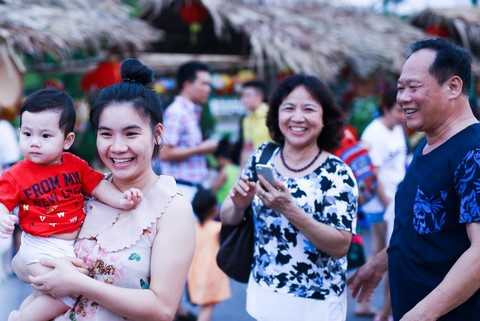 Bước qua cánh cổng đầu lân sư khổng lồ với chiều cao 9m được kết nối cùng dải mặt nạ truyền thống kéo dài 13m là một thế giới trung thu đầy màu sắc cổ tích đón chờ các cư dân và khách mời. Lễ hội Trung thu tại Vinhomes Riverside thu hút hàng nghìn người tham dự, đặc biệt trong số đó còn cả một số người nước ngoài.