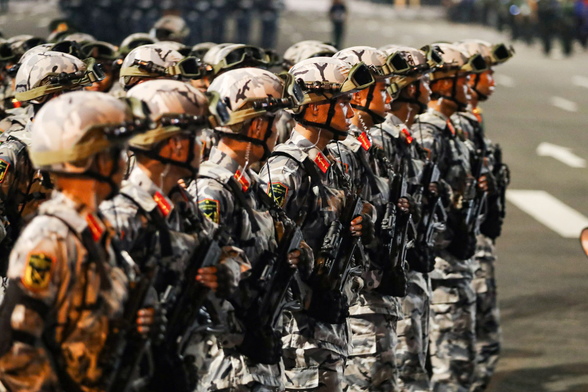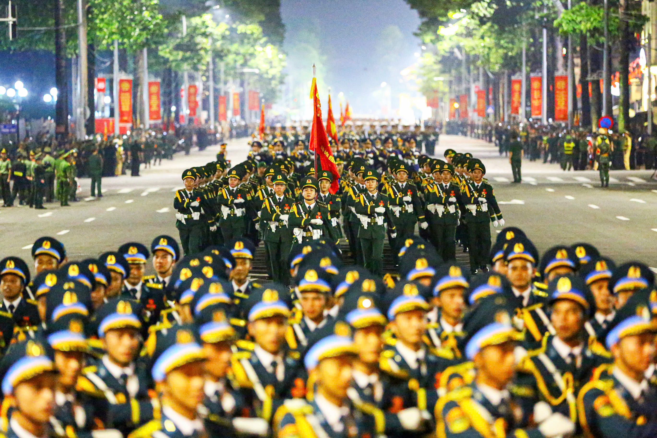 Hơn 16.300 cán bộ, chiến sĩ đồng loạt bước đều, tạo nên âm hưởng mạnh mẽ vang vọng khắp Quảng trường Ba Đình.