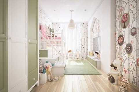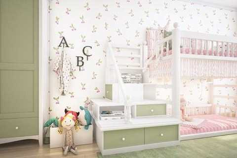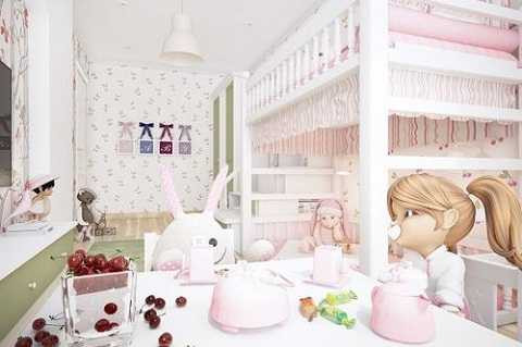 Phòng cho trẻ là một không gian vô cùng thú vị từ khăn trải gường màu hồng dễ thương đến những họa tiết trên tường cùng những đồ trang trí xinh xắn.