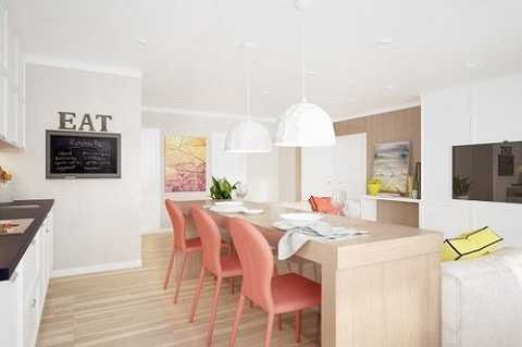 Những màu sắc tươi sáng biến những ngôi nhà đơn giản và hiện đại trở nên lôi cuốn, tươi vui. Những gam màu này lan tỏa ra các khu vực khác trong nhà từ tường tới những chiếc ghế trong phòng ăn, gối tựa và cả phòng ngủ.