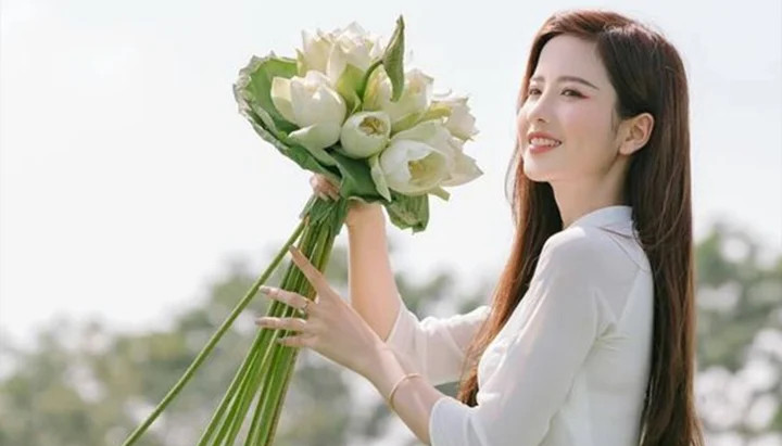 Kiểu buộc tóc nửa đầu tăng sự thướt tha khi diện cùng áo dài trắng.