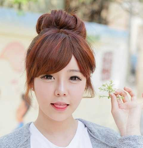 Có bạn còn để mái ngang để che đi phần trán ngắn. Lưu ý, phần tóc mái nên lấy rộng ra từ trên đỉnh đầu và nếu để mái quá thưa cũng sẽ lộ ra nhược điểm nữa đấy! Do đó, một mái tóc ngang dày vừa phải, có thể là mái bằng hoặc mái xéo đều được và nếu có điều kiện nên kẹp phồng phần mái để tạo cảm giác trán cao hơn.