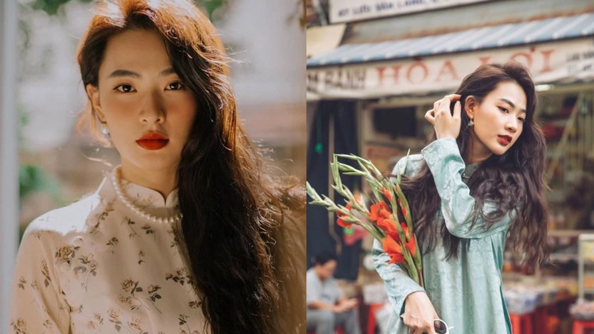 Tóc xoăn đi cùng áo dài mang đến vẻ đẹp cá tính nhưng không kém phần thanh lịch.