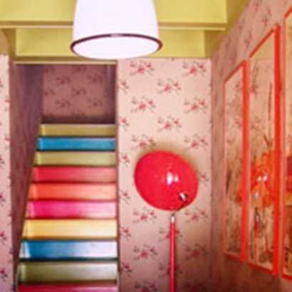 Dán giấy dán tường lên mặt thẳng đứng của cầu thang không phải là một ý tưởng mới mẻ. Tuy nhiên, biết lựa chọn loại giấy phù hợp, hài hòa với màu sắc và phong cách của lối kiến trúc nhà bạn lại là "chuyện mới". Nếu cầu thang hẹp, bạn hãy chọn loại giấy dán màu sắc nhẹ nhàng, trẻ trung như cam đỏ, họa tiết hoa to để không gian trở nên rộng hơn.
