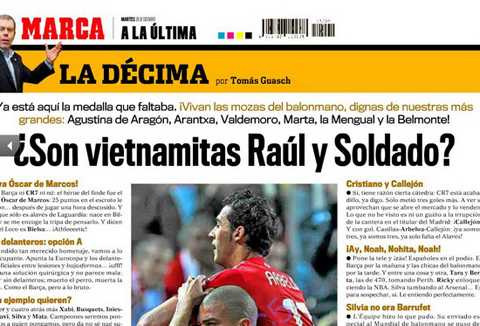 | Tờ Marca của Tây Ban nha và dòng tít nhắc tới bóng đá Việt Nam |