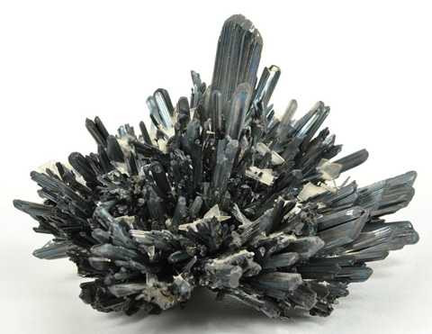 5. Stibnite: Stibnite là hợp chất sulfua antimo, mềm và có màu xám bạc như kim loại. Khi loại đá này mới được phát hiện, nó đã được sử dụng như một nguyên liệu rẻ thay thế cho bạc để sản xuất dao nĩa.