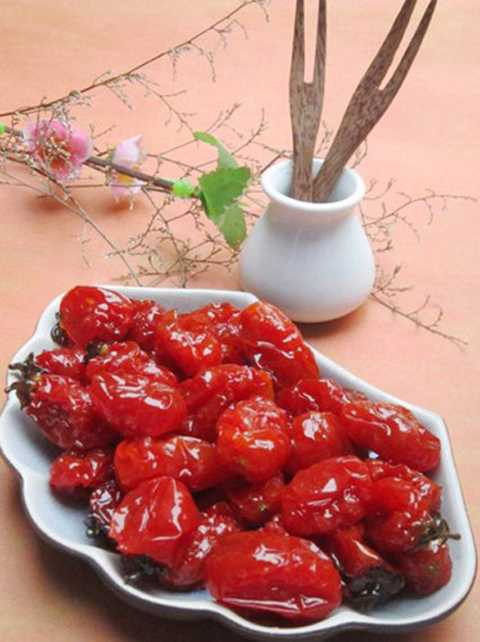 | Cà chua bi vốn quen thuộc trong các món salad đã được nhiều cửa hàng sản xuất mứt chế biến thành mứt dẻo, mứt cà chua xào cay hương vị khá lạ lẫm. Ngoài ra, chúng thu hút khách mua vì mức giá khá "mềm", dao động từ 25.000 - 50.000 đồng/gói (từ 200g). |
