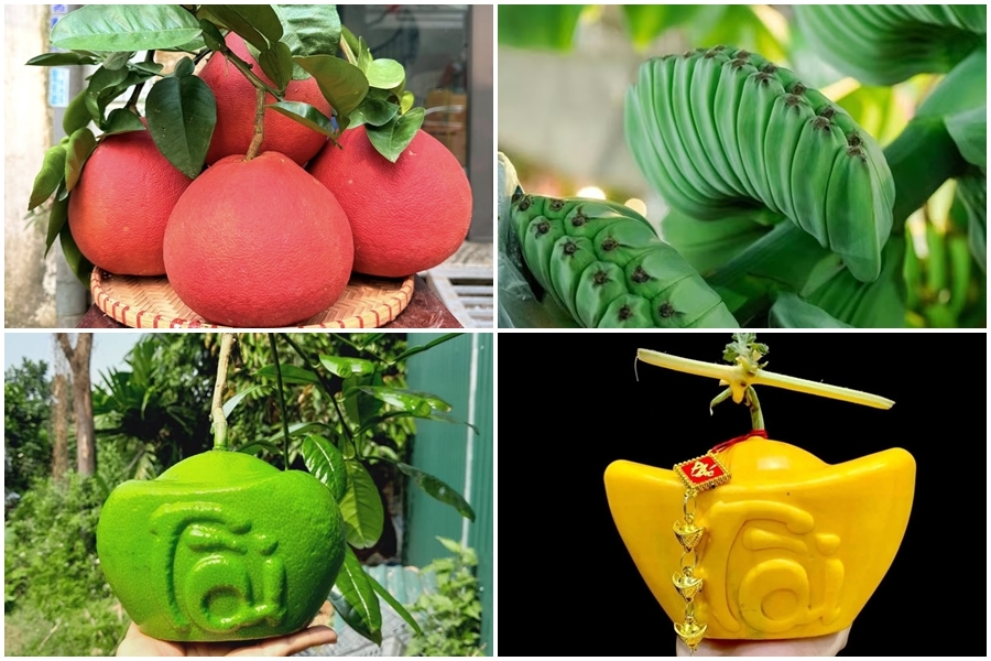 Bưởi hồ lô tạo hình tài lộc, khắc chữ “Phúc - Lộc - Thọ”, “Tài - Lộc” nhiều năm nay đã trở thành “đặc sản” mỗi dịp Tết. Không chỉ tạo hình, bưởi hồ lô còn được nâng cấp với các mẫu khắc chữ thư pháp tinh xảo, kết hợp họa tiết linh vật của năm, tạo nên sự mới mẻ.
