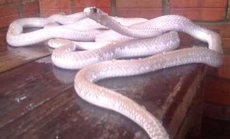 Con rắn này có màu trắng của loài rắn bạch tạng quý hiếm với cặp mắt đỏ au, khiến ai nhìn thấy cũng… khiếp vía.