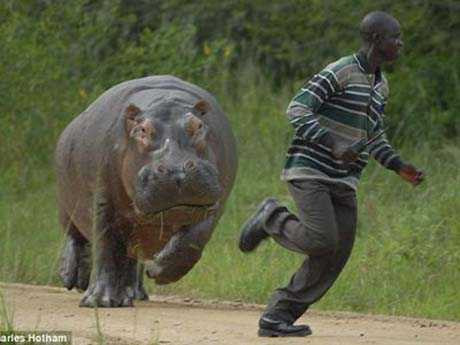 Một người đàn ông bị hà mã giết hụt sợ hãi kể lại. Trong lúc đang đứng gần bờ sông thì ông bất ngờ bị hà mã ngoặm vào chân và lôi đi. Vào phút sinh tử ấy, ông đã cố vũng vẫy và thoát được cùng với sự giúp đỡ của vài người khác.